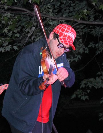 MacIsaac hit the stage next, with his amazing talent on the fiddle. As his rock band backed him up, he stormed through a fiery set of songs, playing so intensely that it appeared as if he were going to saw his fiddle in half. At one point, he even played bagpipe tunes on the fiddle.