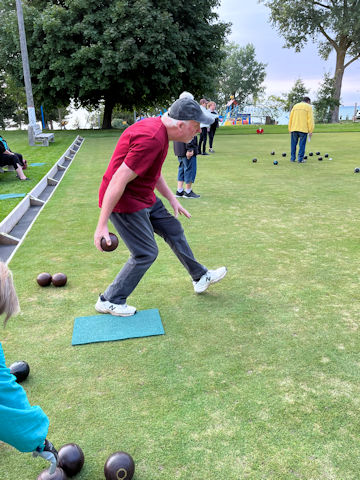 Club member Linda Snyder explained that the balls are called “bowls” and the goal is to roll a bowl as close to the “jack” (a small white ball) as possible. The jack is rolled first down the length of the green to start the play.