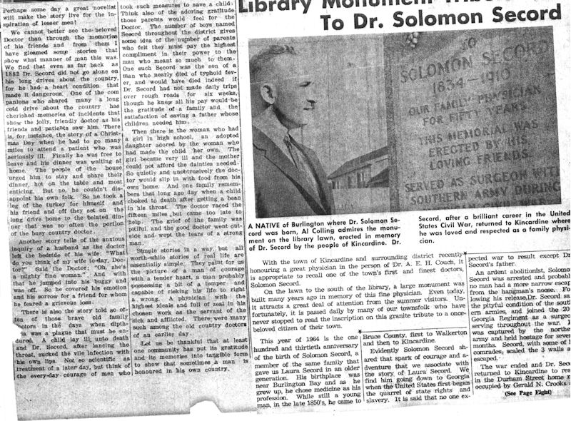 this article (below) about my great-uncle, Dr. Solomon Secord.