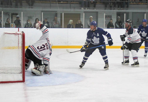 The Toronto Maple Leafs alumni team showed it still has the cutting edge in hockey, downing the Kincardine Bulldogs alumni, 11-8, at the Davidson Centre 50th anniversary hockey game, Saturday night.