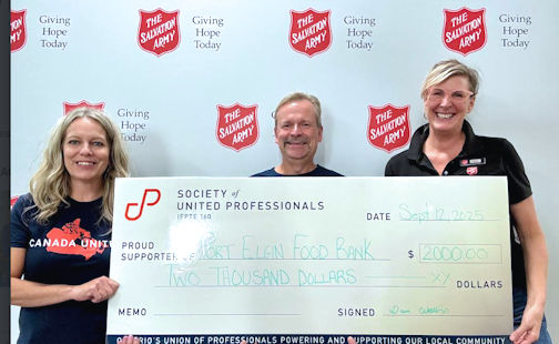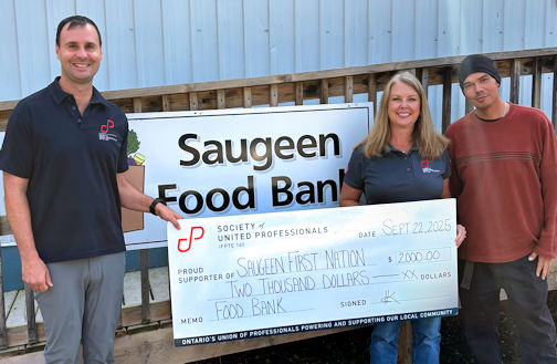 The Society of United Professionals Bruce Local has donated $2,000 each to the Kincardine Food Bank, the Saugeen Shores Food Bank, and the Saugeen First Nation Food Bank.