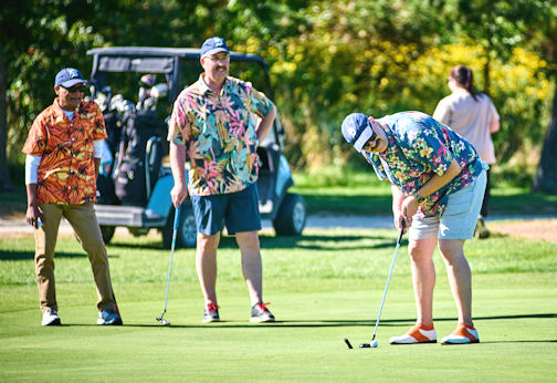 Golfers Dennis Schmidt (left), Ken Quinn and Mark Long participate in the Movember Golf Classic, Sept. 19, at Ainsdale Golf Course; photos by Ryan and Tara McGinn