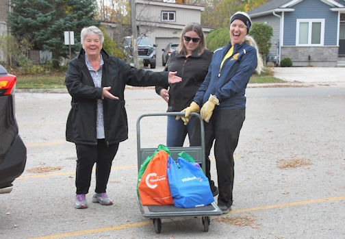 Carol Picot (left) of The Clothes Hamper in downtown Kincardine, presents the Sharecrow donated items to Susan Cruickshank and Lillian Watterworth of the Kincardine Rotary Club