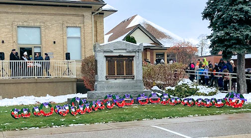 A crowd gathers for the Remembrance Day service at the Cenotaph in Ripley, Tuesday morning; photos courtesy of Fran Farrell