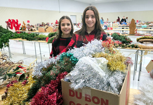 Piper (left) and Zoe Carroll of Kincardine help display some of the festive Christmas decorations for the Big Brothers and Big Sisters of South Bruce North Huron Christmas Yard Sale, Sunday, Nov. 16