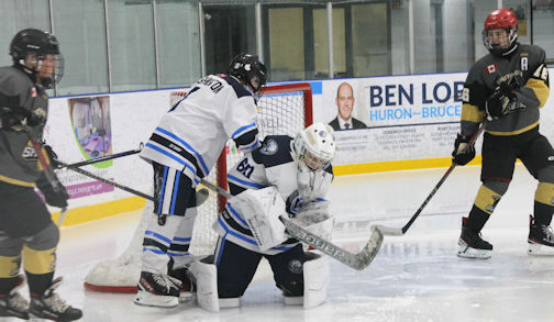 In hockey action, Saturday night, the U15B Tier 2 West Coast Whitecaps (local representative team) downed the South Grey Spartans, 1-0. This was a rather spectacular game as about halfway through the first period, the lights went out at the Davidson Centre. The back-up generator came on but the lights continued to flicker.
