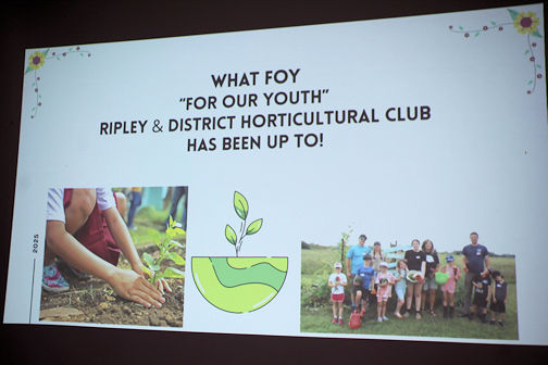 Curran’s daughter, Brooklyn, presented a slide show highlighting the activities and accomplishments of the group in 2025. These largely revolved around a garden plot at the Bruce Botanical Food Gardens and the planning, planting, maintenance and harvesting of the produce. For most, the best part was cooking and eating the fruits of their labour.