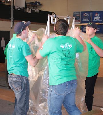 Tuesday night, the competition robot was put through its paces one more time before it was packed away - "bagged and tagged" - not to resurface until the first regional next month.