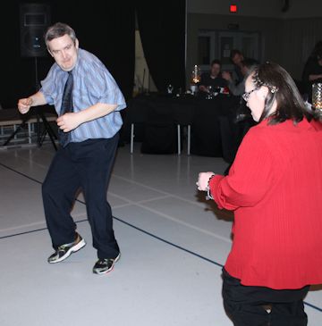 The rest of the evening was spent dancing to the music of MC Travis Crawford of Kincardine who not only filled in as DJ because the band couldn't make it, but also conducted the live auction in the absence of Bruce-Grey-Owen Sound MPP Bill Walker who also could not attend because of the weather. In addition, there were three tables of silent auction items on which to bid throughout the night.