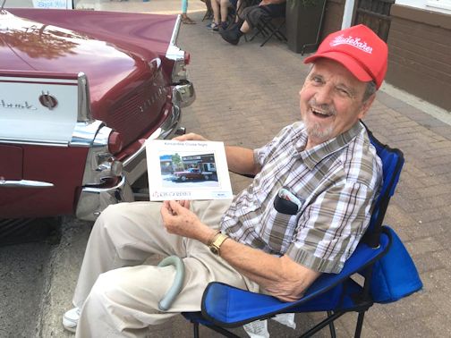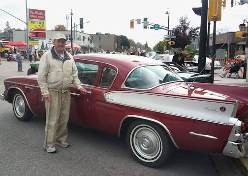 John Hill of Kincardine with a photo of his 1960 Studebaker Hawk, at Cruise Night in Kincardine; photo courtesy of the Hill family