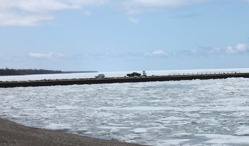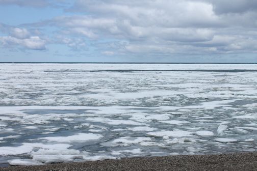 Ice-covered Lake Huron shoreline; and Friday night's catch