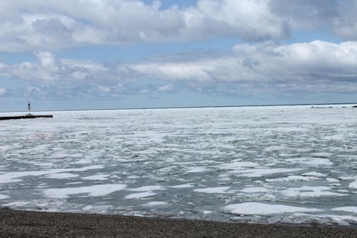 The Lake Huron shoreline, at Kincardine, was covered in ice, while the water further out was a pristine blue, Friday afternoon.
