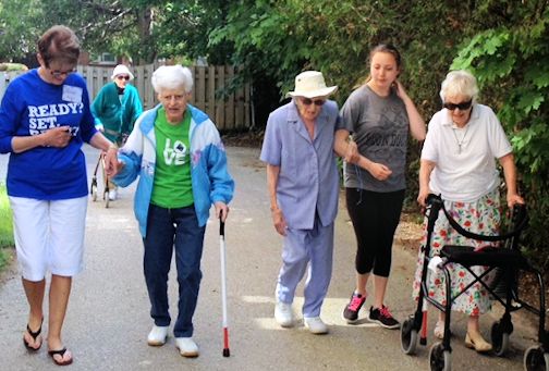 The retirement hosted a mini-Relay for Life with participants walking around the building perimeter and collecting a bead for each lap.