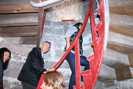 During the climb, tour guide Emily Simpson pointed out that the contractors replaced 437 of the 1,400 stones in the tower. Built between 1855-1859, the limestone tower is 87 feet high to the end of the stone, 93 feet to the top of the light, and 115 feet to the top of the lightning rod.
