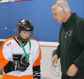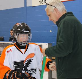 Tournament director Ray Luinstra presented finalist medals to the Kinucks, and championship medals to the Flames.
