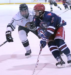 The 'Dogs owned every aspect of the game during the second period, holding the Flyers to a mere four shots on goal, while scoring five goals in a row to take a firm grip on the game. Patrick Wiejak got things started when Brycin Morrison fed him the puck and he converted the pass into a short-handed goal at the 3:22 mark. Labrosse and Moore linked up again at the 6:15 mark for a powerplay goal to make it 3-0, which seemed to take a lot of energy away from the Goderich squad.