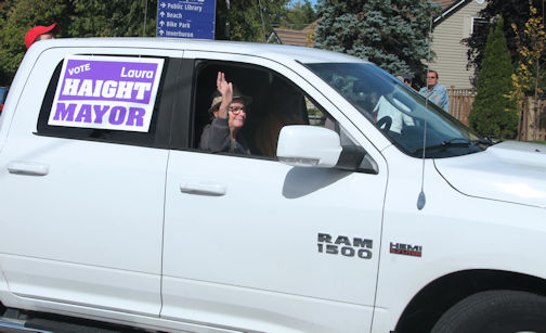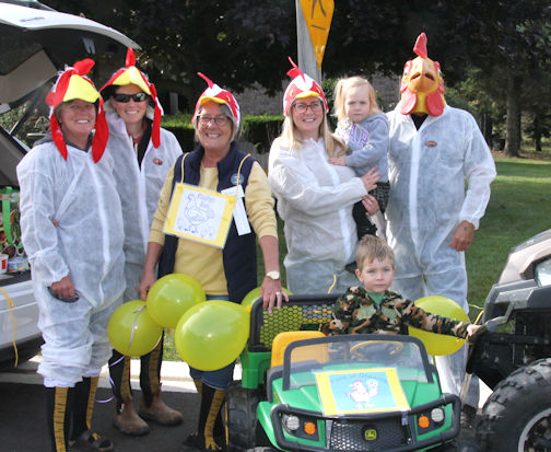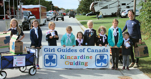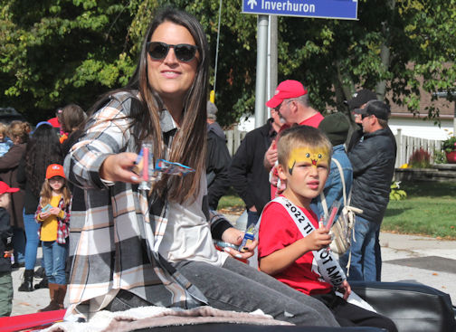 The Kincardine fire truck led the parade, followed by members of Kincardine Guiding, Tiverton Tiny Tot ambassador Wesley Glover and his mom, Kelly; the Teeswater Highlanders Pipe Band, Huron-Bruce MP Ben Lobb, municipal election candidates, Tiverton firefighters pulling the antique pumper, the Bruce Shrine Club, the Tiverton Lions, Kincardine Fall Fair ambassador Luke McBride, the amazing Craig-Convay Baseball Field float, Ripley-Huron Fall Fair ambassador Hailey Farrell, the chickens of Kenvel Farms, and the King’s Pearl vehicle.