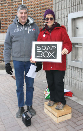 A handful of people gathered for the Soap Box Speech, held Saturday, Dec. 10, in downtown Kincardine.