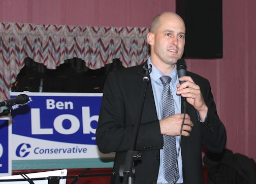 Re-elected Huron-Bruce MP Ben Lobb thanks his supporters, campaign team and the people of Huron-Bruce Monday night