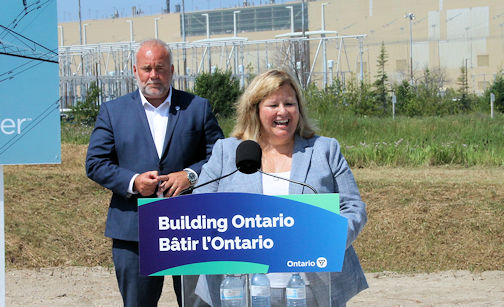Huron-Bruce MPP Lisa Thompson speaks to the crowd at Bruce Power, during the announcement; with her, is Ontario energy minister Todd Smith