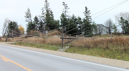 A couple of hydro poles were knocked out along Highway 9, east of the Armow Road, while hydro poles blocked Bruce County Road 20, east of the B-line for most of the day.