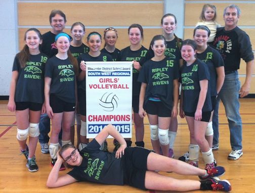 The Ripley Ravens girls volleyball team wins the South West Regional championship, Tuesday, in Kincardine; photos courtesy of principal Graham Martin