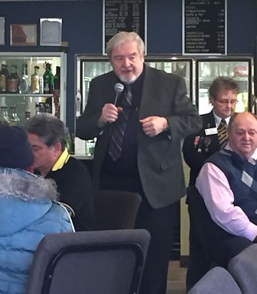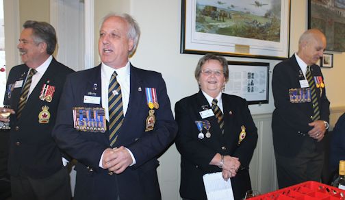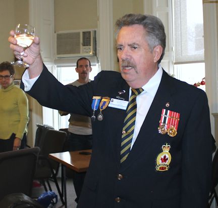 President Mary Farrell welcomed everyone, and first vice-president Jim McDonald raised a toast to the Queen. Red Larsen raised a toast to our Fallen Comrades, and then Zone C-1 Commander Eric Ross of Brussels brought greetings from the zone.