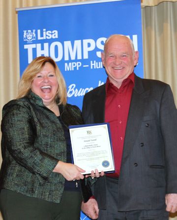"Thank you for this award, but I want to accept it on behalf of all the volunteers in Bayfield," he said, "and thanks to my wife for her support."