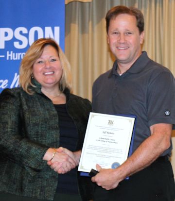Roberts accepted the award on behalf of the 700 members of the soccer club who are looking forward to playing on improved fields. "We need to invest in our youth because they are our future." He also thanked his friends and family for their support.