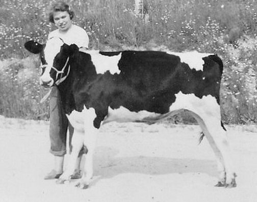 True Type Holstein (below) on my mantle, a wealth of memories comes to me. “Ruby” was partly responsible for this award which was presented at the Bruce County Holstein Banquet in 1955. It signified that I had earned the most points in all the county dairy clubs – 925 out of 1,000. The Hollands family is proud that Gail and cousin Koleen also won this award, some of us more than once and with higher points.
