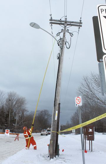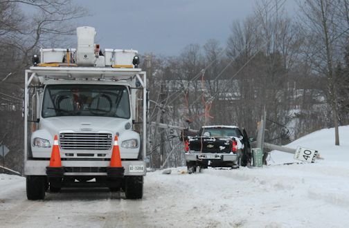 The accident happened around noon and that section of road was closed while Westario Power workers cleaned up the mess and tried to restore power as quickly as possible. They hoped to have the hydro back on at the high school and area properties by 6 p.m.
