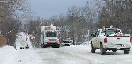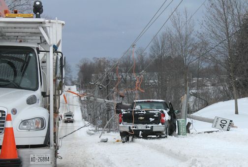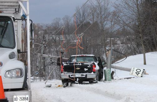 A pick-up truck went off the roadway, knocking out a hydro pole and causing a power outage, along Durham Street, between Kincardine District Secondary School and the Davidson Centre in Kincardine, Thursday afternoon.