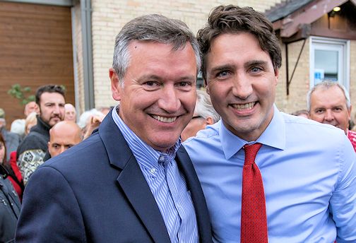 Allan Thompson (L) with prime minister Justin Trudeau during the 2015 election campaign; photo courtesy of Allan Thompson