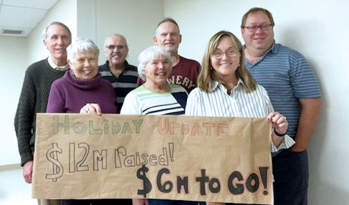 Launched in January, 2022, the campaign has been powered by the dedication of its health-care ambassadors. Despite winter weather keeping many at home, a few volunteers braved the snow to celebrate this milestone with a photo, holding a sign that proudly reads “$12-million raised; $6-million to go!”