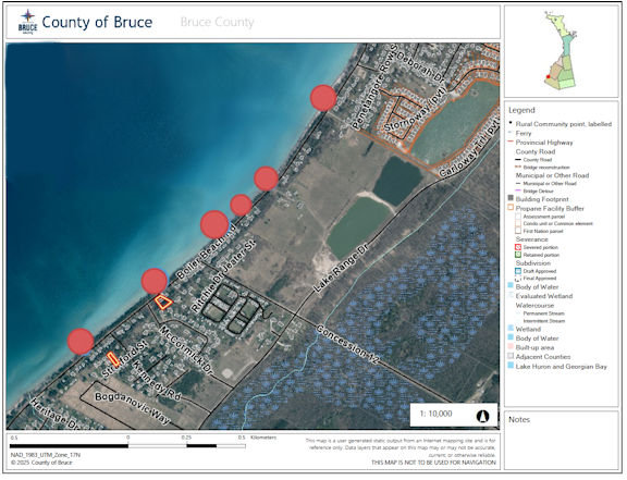 Proposed stair locations along Boiler Beach Road in Huron-Kinloss Township