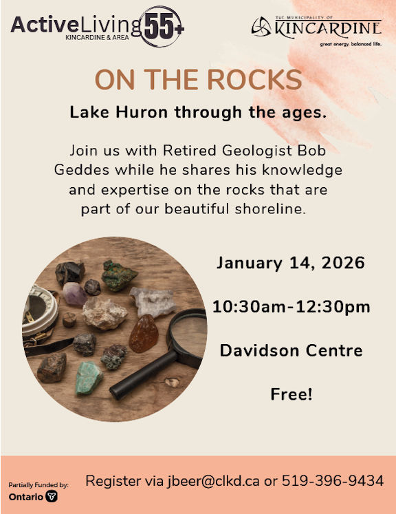 "On the Rocks," a look at Lake Huron through the ages, is set for Wednesday, Jan. 14, from 10:30 a.m. to 12:30 p.m., at the Davidson Centre in Kincardine.