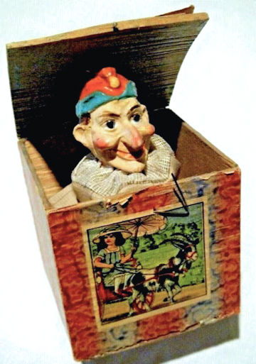 It was, for some reason, thought "sissy" for a boy to play with a doll, but along came the Teddy Bear and they were deemed fit companions, as were the drum, lead and tin soldiers, and the Jack-in-the-box. The Jack-in-the-box was a dandy to frighten the girls, as sometimes in place of Jack, a horrid green snake popped up. To a small brother's warped sense of humour, this was great fun.