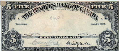 If you robbed the Traders Bank, you could obtain this $5 bill from 1909