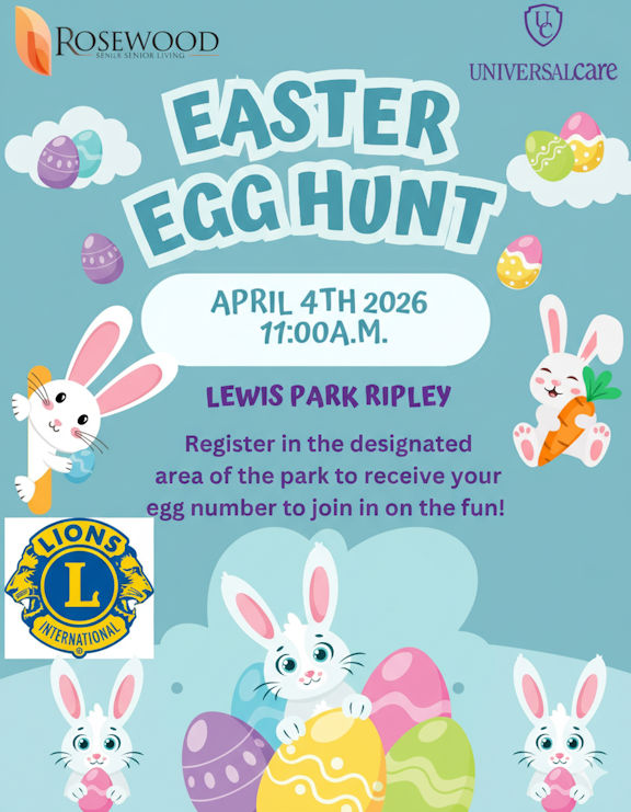 Ripley's annual Easter Egg Hunt will be held Saturday, April 4, at Lewis Park.