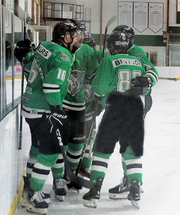 Jordan Moulton, Logan Swanton, Garrett Meurs, and Carter Servais gave the Wolves the lead before Ethan Skinner added a beautiful empty-netter on their way to the Game 2 win.