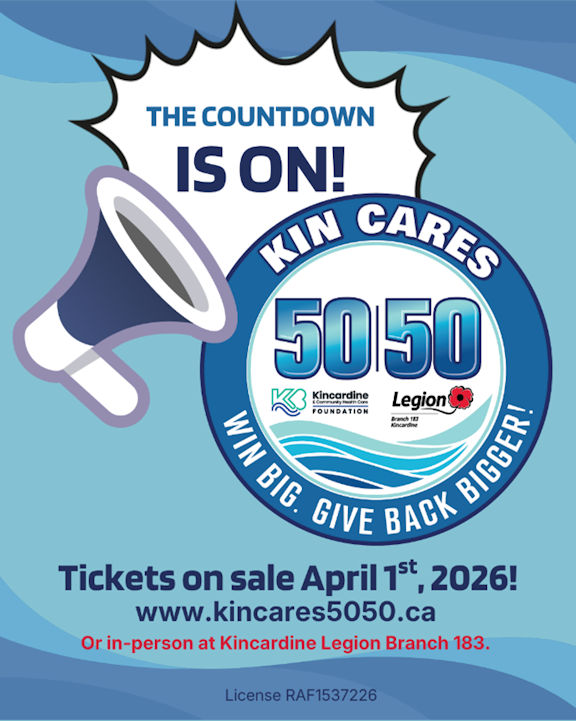 It's no joke, tickets go on sale Wednesday, April 1 (April Fool's Day), for the Kin Cares 50/50 monthly lottery, a collaboration between the Kincardine and Community Health Care Foundation and the Kincardine Legion.