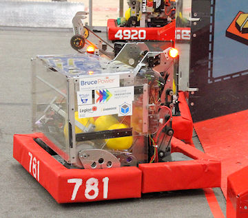 FRC Team 781's robot competes in qualifying matches at the Ontario District competition in Windsor on the weekend