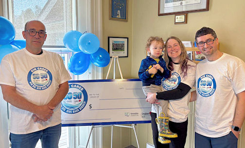 Russ Crook (left) welcomes Dr. Jason Murray and his family to the first Kin Cares 50/50 Early Bird draw