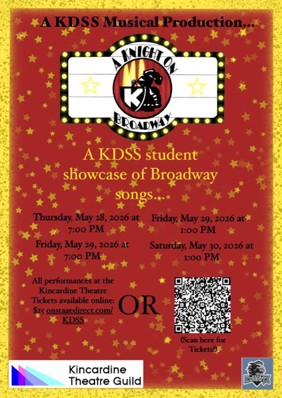 The Kincardine District Senior School (KDSS) Musical Theatre Performance Club is in rehearsals to bring the musical, "A Knight On Broadway," to the stage at the Kincardine Arts Centre, opening May 28.