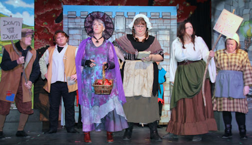 While the cast brings much to the wild and zany atmosphere of the play, the stand-outs are the three witches played by newcomers Patti Kell as Granny Weatherwax and Savannah DeLuca as Magrat Garlick, and veteran Jenn White as Nanny Ogg.