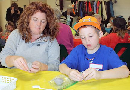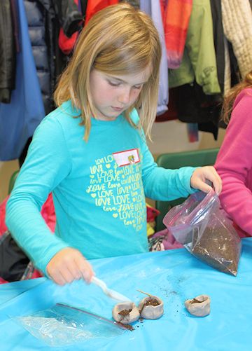 Then each youngster received three balls of clay which he/she shaped into bowls, filled with seeds, formed back into balls and put in a bag to take home. These seed bombs can be thrown along the side of the road, in a ditch, in front of some trees or bushes, just about anywhere that needs to be beautified, said Eisen. For best results, they should be thrown when the ground is warm and wet, usually in late April or May.