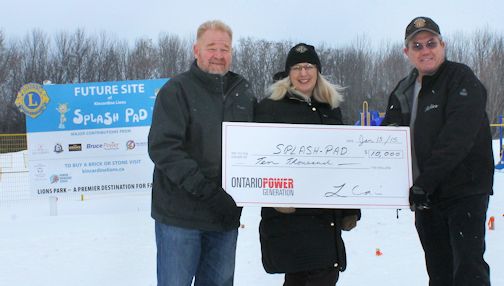 And last week, Lynda Cain of Ontario Power Generation (OPG) was on hand to present a cheque for $10,000 to the Kincardine Lions Club Splash Pad project.