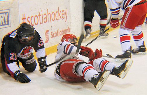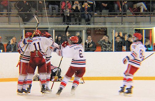 In the final seconds of the game, Walkerton pulled its goalie for the extra attacker, and Keegan Angel fired in an empty-netter from Matthew Mah, to give the 'Dogs a 2-0 win, and tie the series, 3-3.
