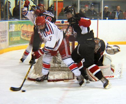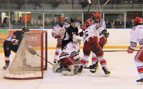 It was mostly a battle between Kincardine goalie Jacob Hutchings, and Walkerton goalie Nick Redman, as both sides were down players through numerous penalties.