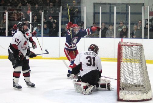 Following a scoreless first period, Tyler Fregona opened the scoring for the Bulldogs, on a powerplay effort from Shawn Moore. Kincardine stifled the Hawks' powerplay, and did not give up a single goal while down a man.